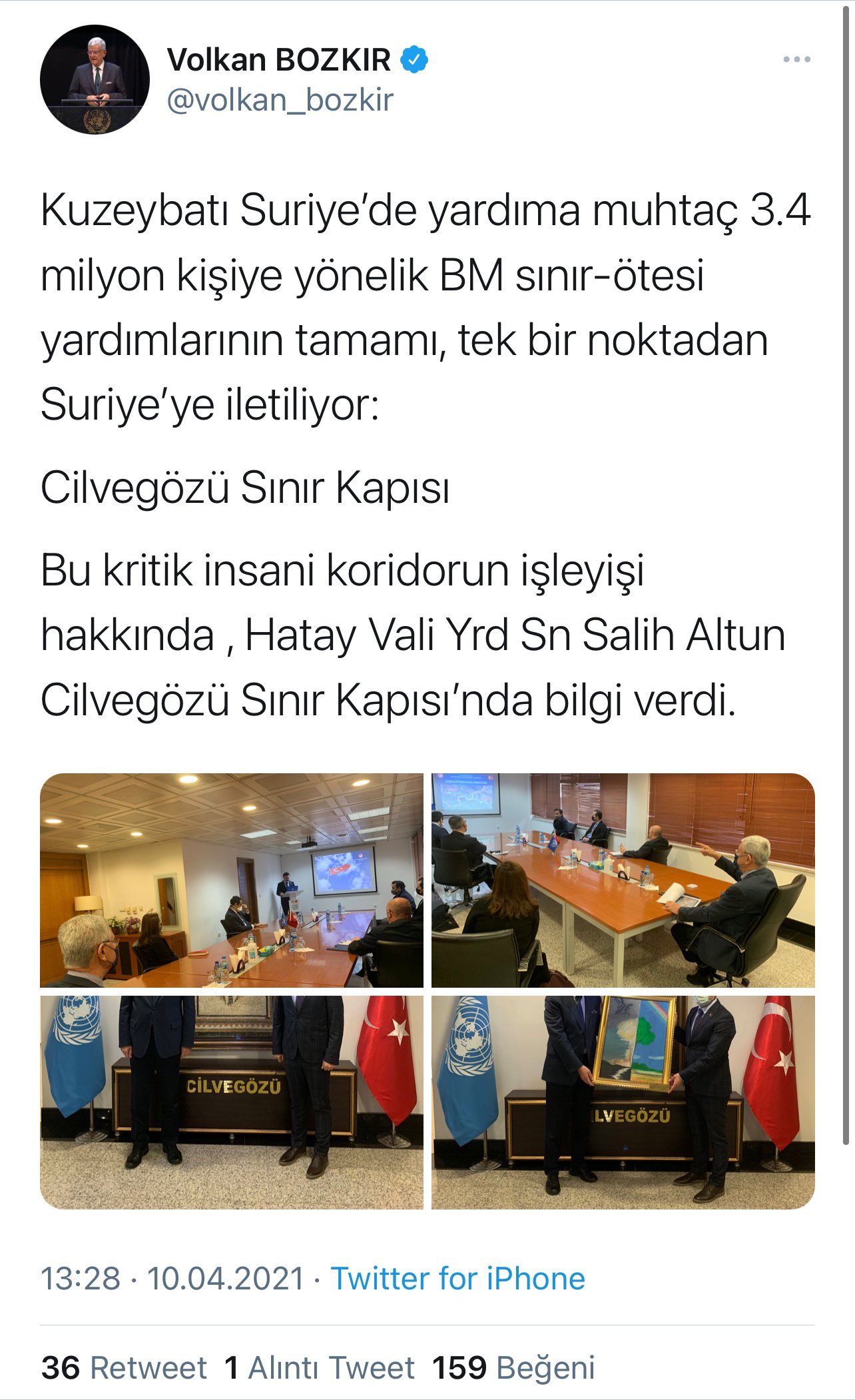 BM 75. Genel Kurul Başkanı Sayın Volkan Bozkır, beraberinde Türkiye’nin Birleşmiş Milletler Daimi Temsilcisi Feridun Sinirlioğlu ve diplomatlardan ve BM yetkililerinden oluşan bir heyet ile BM Sınır-Ötesi İnsani Yardım Mekanizması’nı yerinde incelemek üzere Cilvegözü Sınır Kapısını Ziyaret Etti.